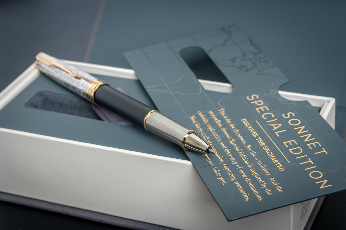 Ручка роллер Parker Sonnet Special Edition 2018 Impression Matte Black GT от официального дилера Parker в Костроме. Вы можете дополнительно заказать гравировку, которая подчеркнет Вашу оригинальность и придаст памятность статусному подарку. Все ручки Паркер поставляются в фирменном футляре.